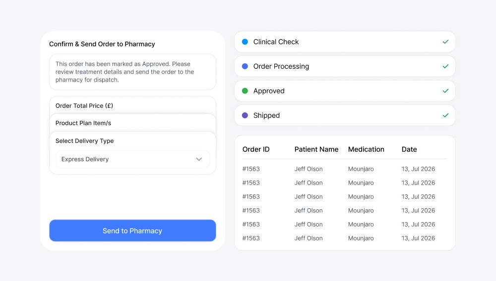 Replace your patchwork of generic software, spreadsheets, and WhatsApp with one purpose-built platform. From MHRA-compliant consultations to real-time pharmacy tracking to AI-powered patient support - manage your entire operation in one place, so you can focus on patient outcomes, not operational chaos.